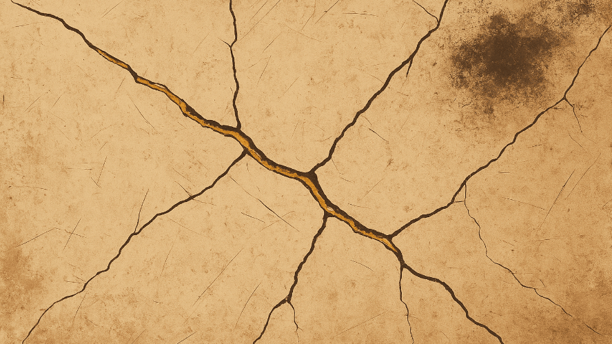 Ada filosofi kuno dari Jepang yang disebut kintsugi—seni menyambung keramik yang pecah dengan bubuk emas. Retakan tidak disembunyikan, melainkan dipertegas. Nilai benda itu justru meningkat karena ia pernah hancur. Itulah estetika retakan: keindahan yang muncul dari keberanian mengakui patah.