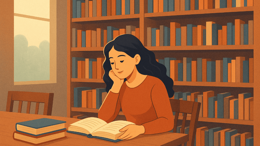Seolah saat saya masuk ke perpustakaan aroma kertas yang mulai menua menyambut. Suara kipas angin berputar pelan, seolah menjaga suasana tetap lembut. Kursi kayu di sudut ruangan terlihat keras. Tapi entah kenapa terasa seperti tempat paling nyaman yang pernah saya duduki. Di sana saya sadar, ribuan cerita sedang menunggu untuk disentuh.