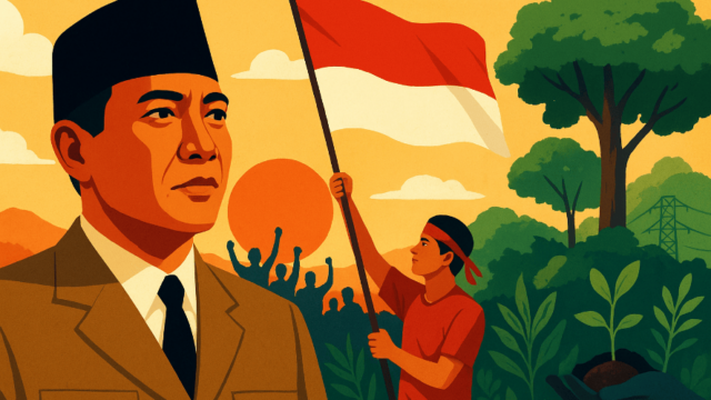 Namun, gagasan Sukarno tentang nasionalisme tidak bisa berhenti sebagai romantisisme sejarah. Ia perlu diuji di hadapan tantangan zaman sekarang. Dunia pasca kolonial ternyata tidak bebas dari bentuk penjajahan baru. Kapitalisme global menjerat ekonomi Indonesia melalui ketergantungan investasi dan dominasi modal asing di sektor-sektor strategis; digitalisasi menjadikan nasionalisme sekadar slogan yang diproduksi algoritma dan diperdagangkan lewat politik pencitraan; sementara tanah air yang dahulu menjadi inti pemikiran Sukarno justru kian terkoyak oleh deforestasi, pertambangan, dan krisis iklim. Pernyataan Menteri Energi dan Sumber Daya Mineral (ESDM) Bahlil Lahadalia, yang menyebut bahwa membabat hutan demi pembangunan nasional “tidak masalah”, menunjukkan dengan gamblang bagaimana alam dikorbankan atas nama pembangunan. Dalam situasi seperti ini, nasionalisme sejati bukanlah upacara simbolis, melainkan keberanian melawan kapitalisme lokal dan global, serta membela bumi Indonesia dari kehancuran ekologis. Dalam kerangka pemikiran Sukarno, merusak lingkungan berarti menghancurkan manusianya; dan bila manusianya hancur, maka nasionalisme pun akan runtuh. Bagaimana mungkin membicarakan masyarakat tanpa membicarakan alamnya?